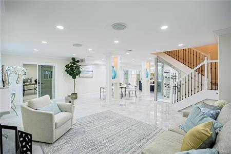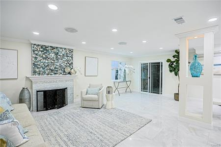 Welcome to 17230 San Lorenzo Circle, set within the coveted Green Valley neighborhood of Fountain Valley. This fully renovated home offers 4 bedrooms, 3 bathrooms, and a versatile bonus room across approximately 2,288 square feet on a 5,400 sq ft lot. Designed with modern living in mind, the open-concept layout is filled with natural light and enhanced by custom recessed lighting. The chef’s kitchen impresses with a dramatic waterfall island and seamlessly integrated appliances, while the living room is an entertainer’s dream highlighted by a striking illuminated wine cellar and thoughtfully designed feature wall. Upstairs, you’ll find all bedrooms, including a luxurious primary suite featuring a private balcony, expansive walk-in closets, and a spa-inspired bath. Indoor-outdoor living is redefined with an enclosed glass patio that opens to a beautifully landscaped tropical retreat with mature longan trees. Additional highlights include solar panels, a low $45/month HOA with access to pools and clubhouse, and a prime location within walking distance of Mile Square Park and top-rated schools. Blending luxury, comfort, and community, this Fountain Valley gem is truly one-of-a-kind.